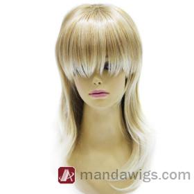 Flaxen Curly Full Bang Medium Wigs |