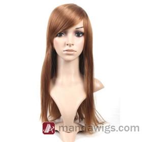 Golden Brown Inclined Bang Super Long Straight Wigs |