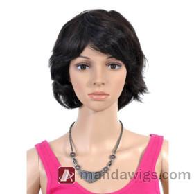 Heat Resistant Black Inclined Bang Human Hair Wigs |