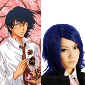 Ink Blue Curl Up Inclined Bang Cosplay Wigs |