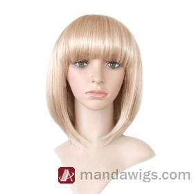 Light Gold Heat-resistant Fiber Smooth Bob Wigs |