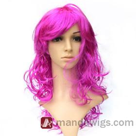 Long Pink Inclined Bang Party Wigs |