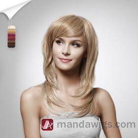 Middle Long Inclined Bang Light Gold Human Hair Wigs |