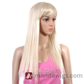 Neat Bang Light Blonde Heat Resistant Straight Wigs |