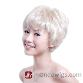 Neat Bang Smooth White Curly Wigs |