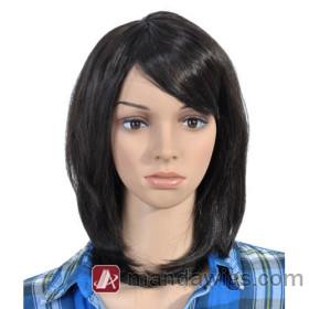 Shoulder Length Curl Up Black Medium Wigs |