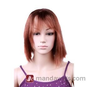 Silky Straight Red Wine Shoulder Length Human Hair Wigs |