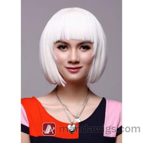 Straight White Shoulder Length Bob Wigs |