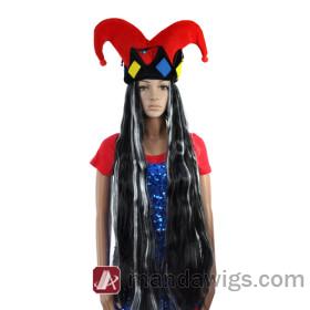 Super Long Black Mix White Antistat Party Wigs |