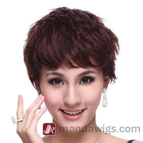 Wine Red Short Feather & Flirty Human Hair Wigs |